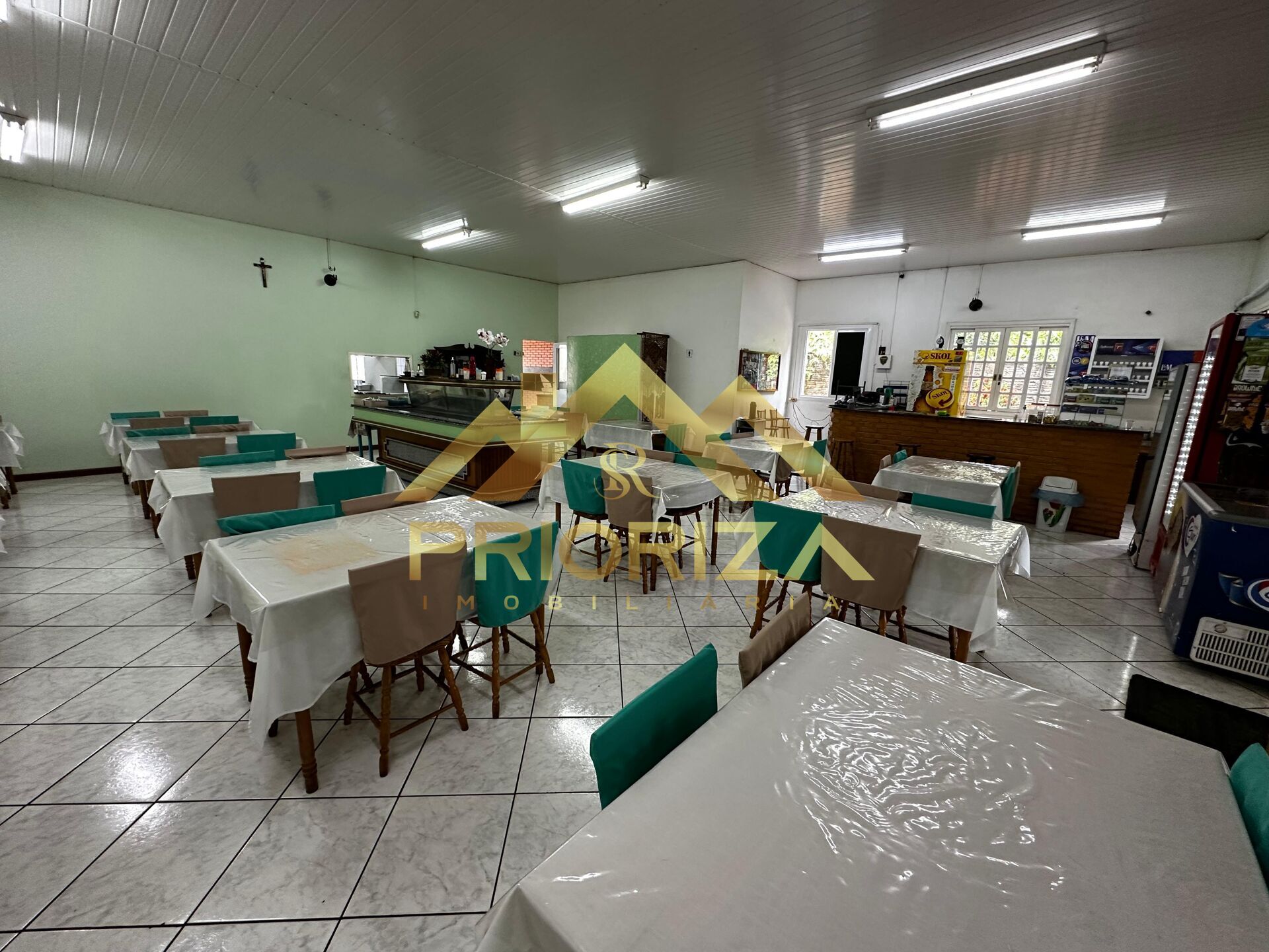 ✔️ Medindo aprox. 180,00 m², contendo sala de refeitório, balcão, dois banheiros, churrasqueira e cozinha.